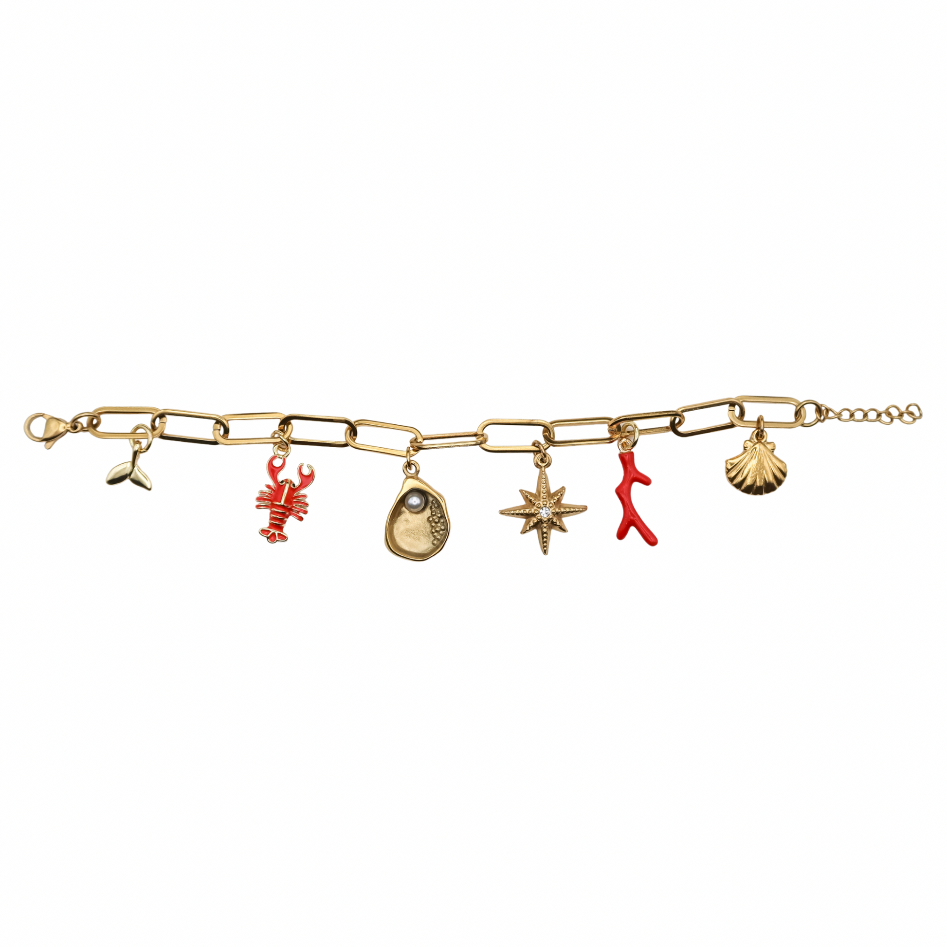 Charms: Mermaid Tail, Red Lobster, Oyster with Pearl, Textured Compass Star, Red Coral, Mini Shell