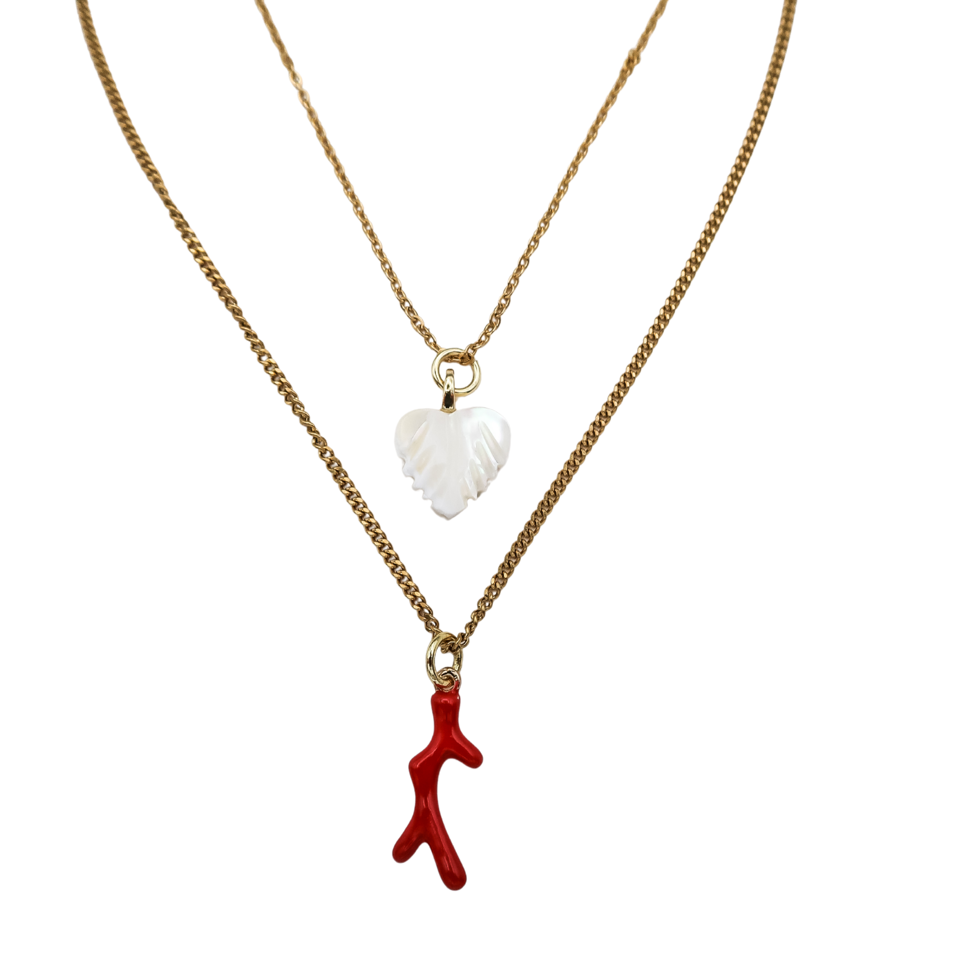 Bold, radiant, and ocean-inspired — this 18" necklace features a striking red enamel coral charm suspended from a 2mm diamond-cut curb chain, crafted in 18K Gold PVD-coated stainless steel. The faceted cut of the chain catches the light just right, adding the perfect touch of sparkle to your neckline. The coral charm brings a pop of color and a hint of coastal magic, making it a standout piece for summer and beyond.