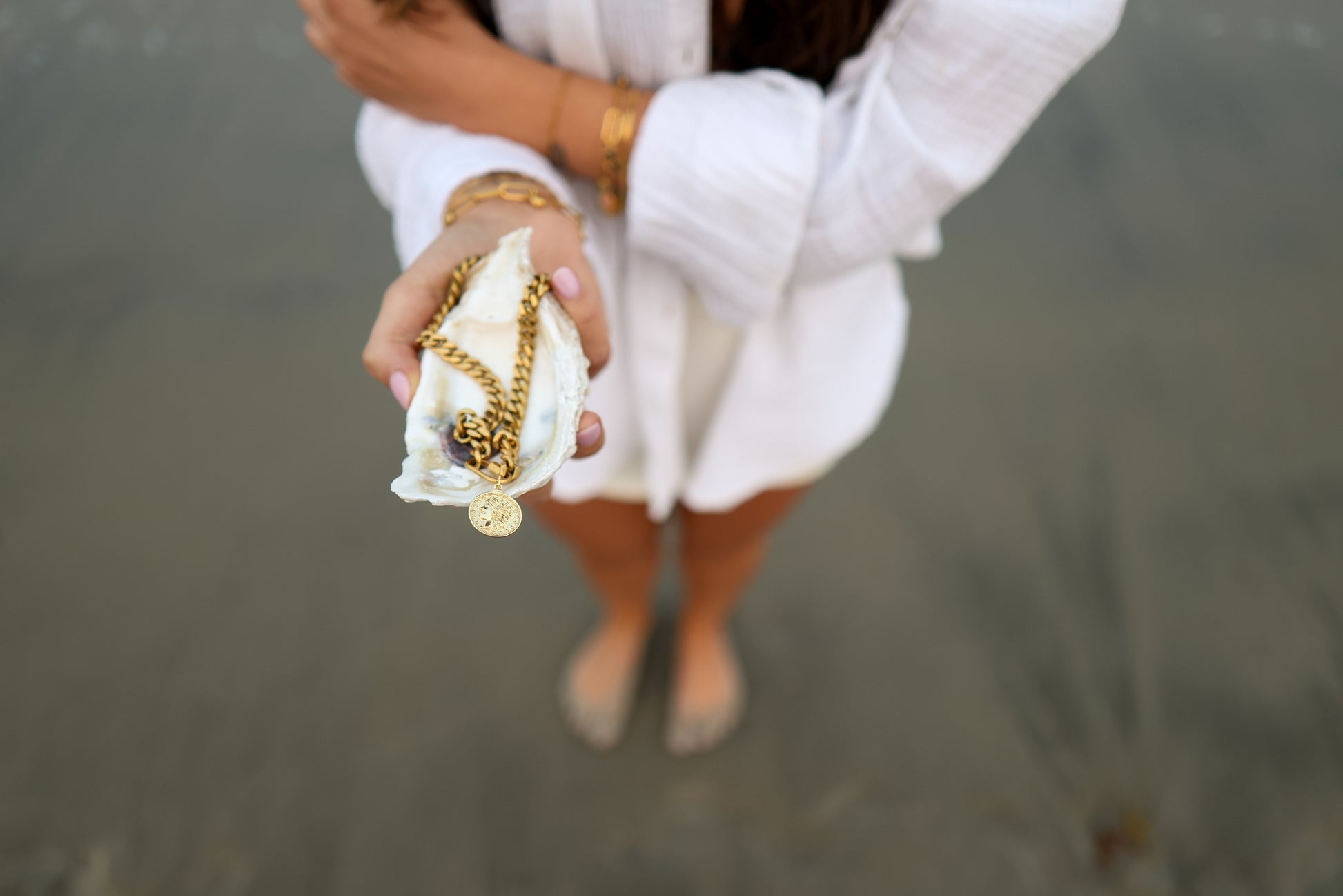 Crafted to last, the PVD-coated stainless steel ensures durability, water resistance, and a lasting golden glow — made for layering or standing strong on its own.