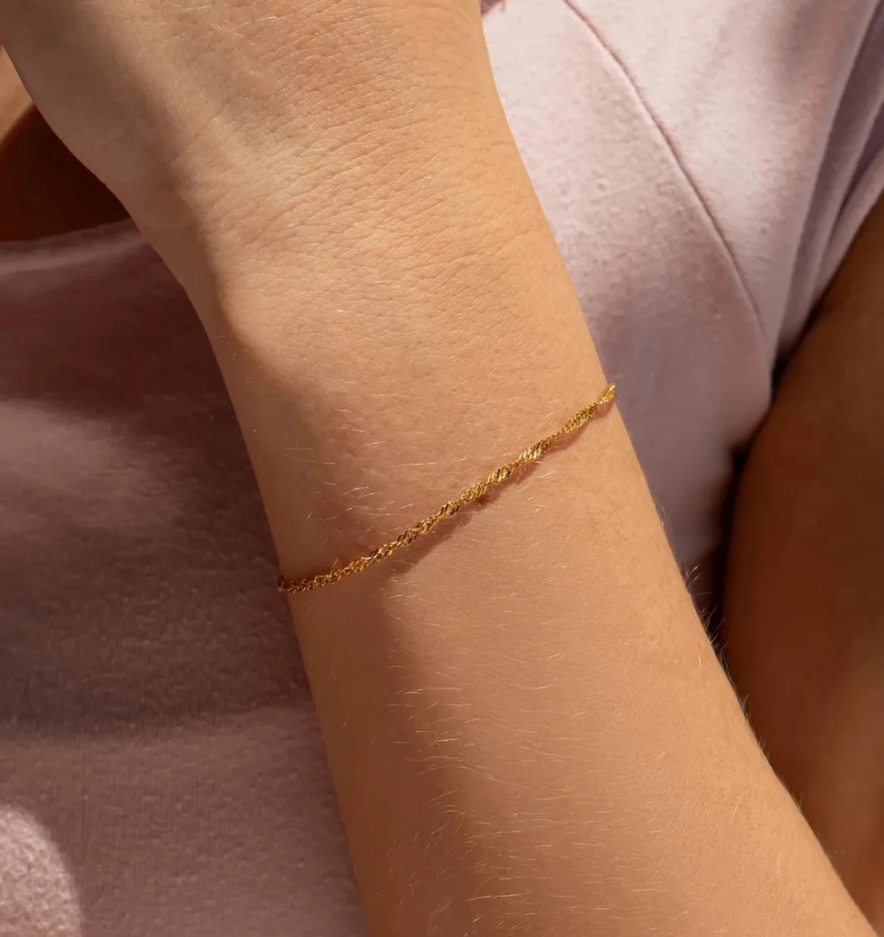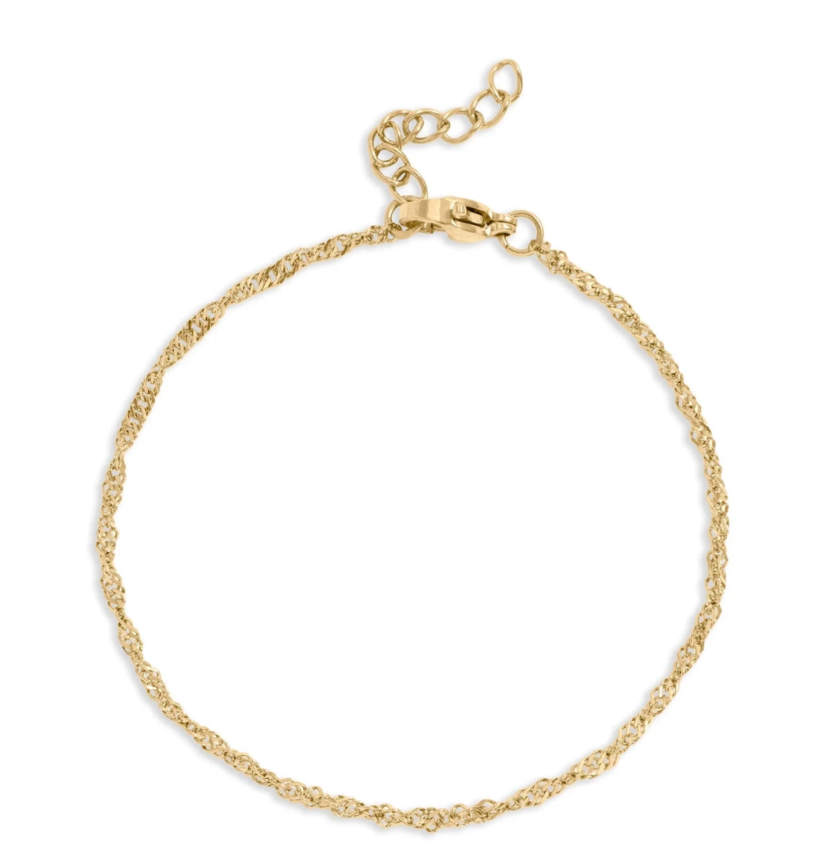 Delicate with a twist — the Taylor Chain Bracelet is a timeless classic with a subtle sparkle. Crafted from 18K Gold PVD-coated stainless steel, this 6.5" bracelet with a 1" extender features a twisted, fluid design that shimmers with every movement. Lightweight yet durable, it’s perfect for everyday wear or layering with your favorite stacks.